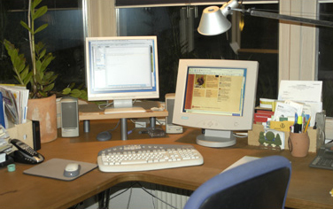 Last week we rearranged the computer room and set up my new work place. I have a G4 powermac